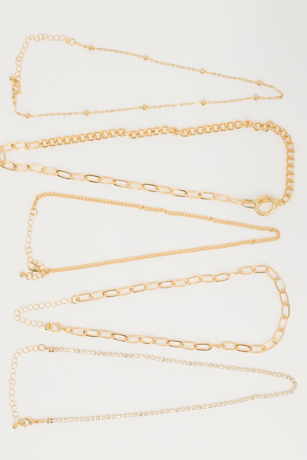 Get ready to layer like a pro with the Golden Hour Links Everyday Set—a fabulous collection of five gold chains that'll have you saying "yes" to versatility. Each chain brings its own vibe, from sleek and minimal to bold and eye-catching. Mix lobster and toggle clasps let you switch things up whenever the mood strikes. With adjustable sizing to fit your style, you can rock them solo for understated elegance or stack them all for maximum impact. Whether you're treating yourself or surprising someone special, this set is your ticket to endless necklace combinations.