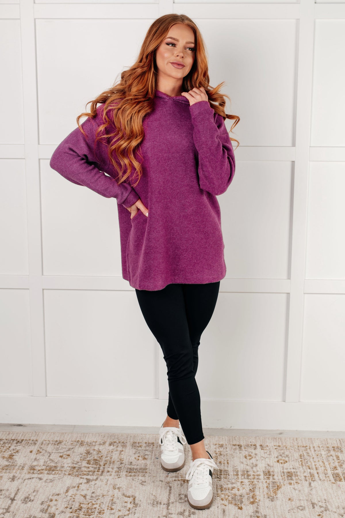 Stay cozy and stylish with our Basically My Favorite Hooded Pullover in Bright Mauve! The brushed melange fabric provides a soft feel, while the hood and banded cuffs and hem add a practical touch. Perfect for layering with its basic colors, this pullover is sure to become your go-to favorite.